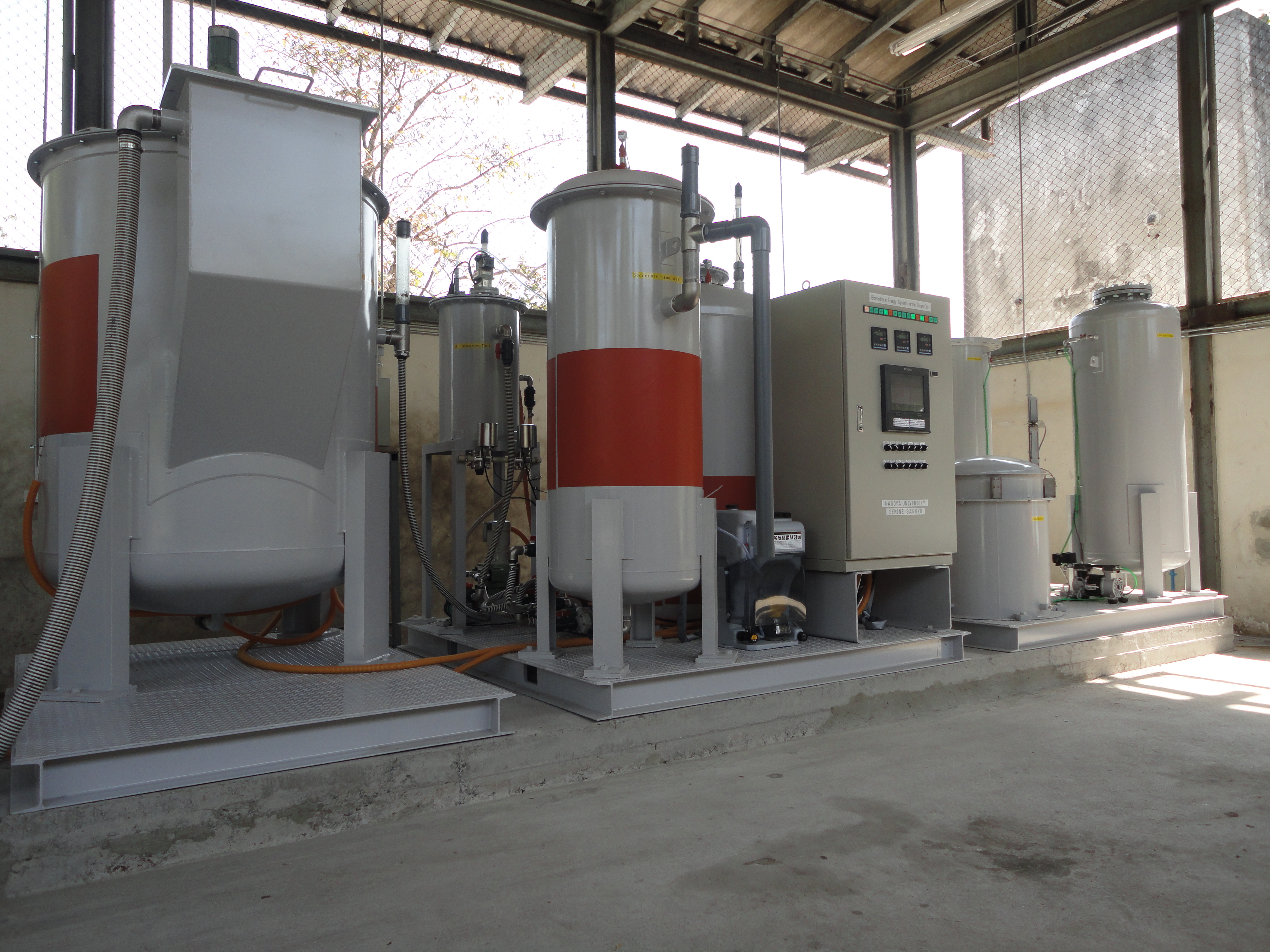 好気性の生物処理では難しい高濃度排水処理としてメタンガス発酵装置を採用し、メタンガスの発生によりBOD濃度を低減させます。これにより従来の好気性処理を安定させる事ができます。