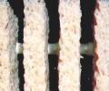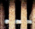 次に、付着したバクテリアは餌となる汚水の流入を遮断することで栄養源を断たれ、付着したバクテリア同士が共食いをする結果、汚泥が自然と消滅していきます。(下記写真)