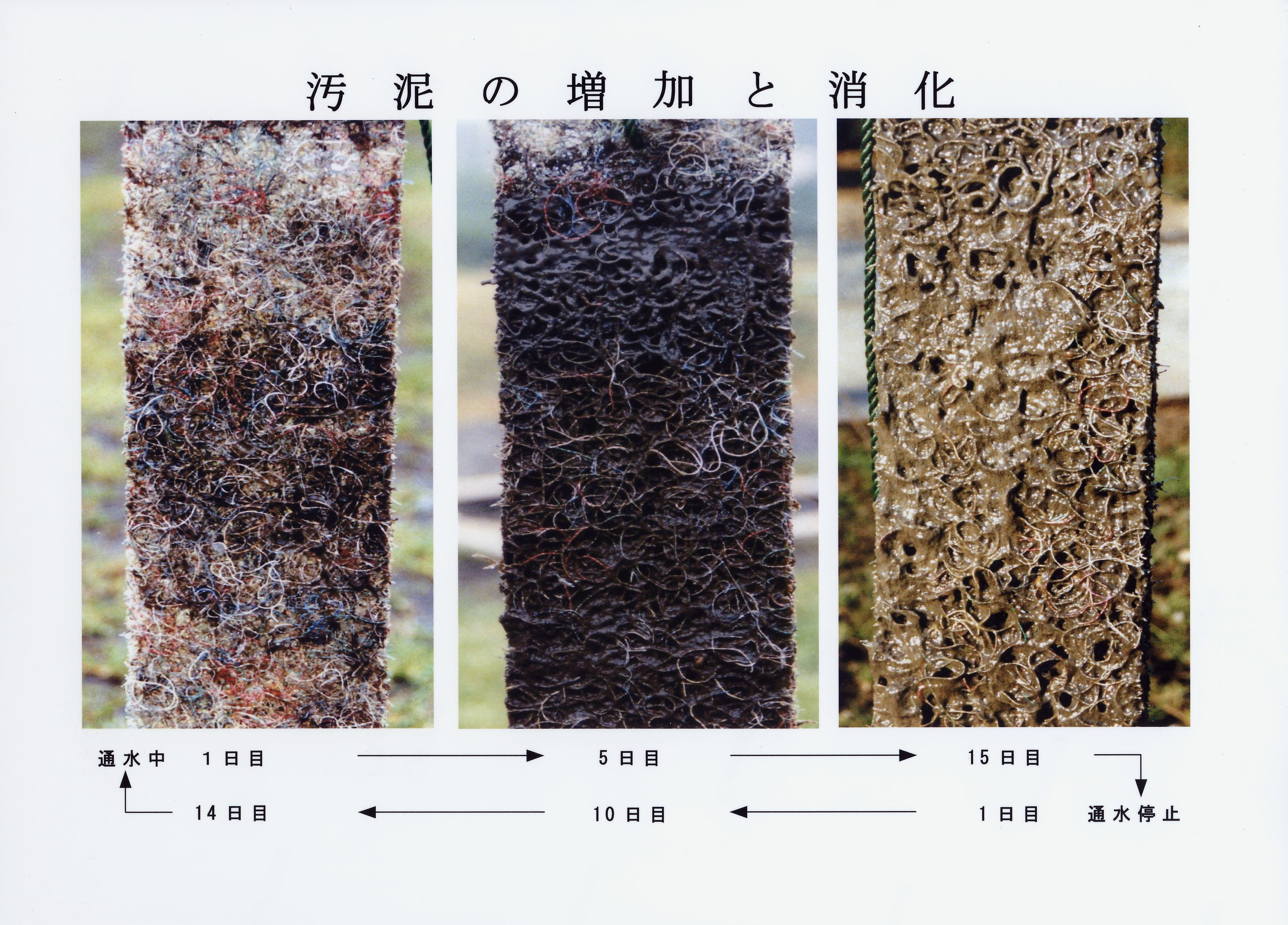 このシステムでは生物自体の特性を利用し、余剰汚泥問題を着実に解消、すでにしっかりとした